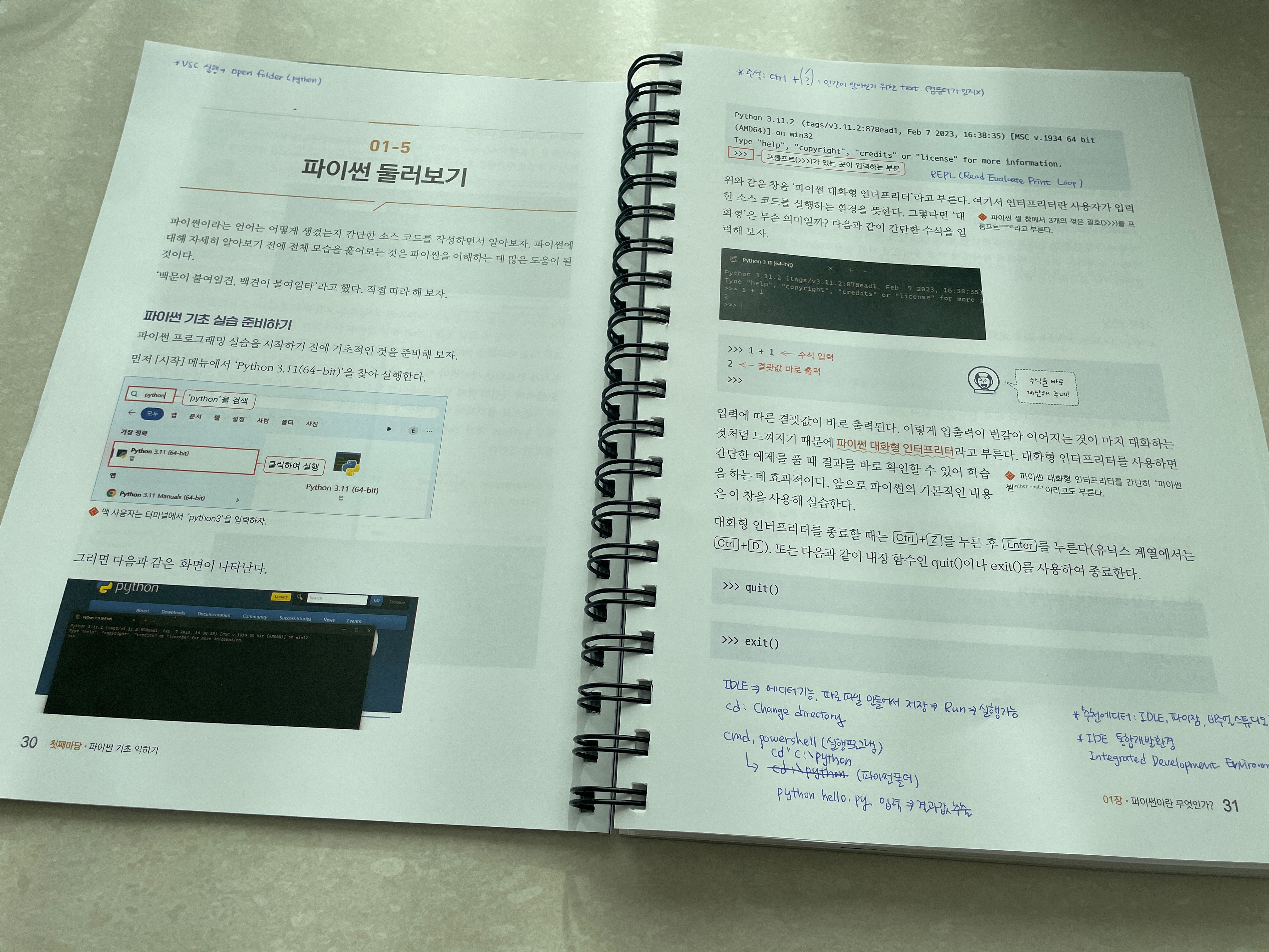 지난 번에는 책 주문하고 파이썬은 뭐고 어떻게 활용되는지만 배운터라, 직접 프로그램을 실행하고 코드를 입력해본 건 처음이었다.